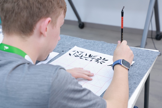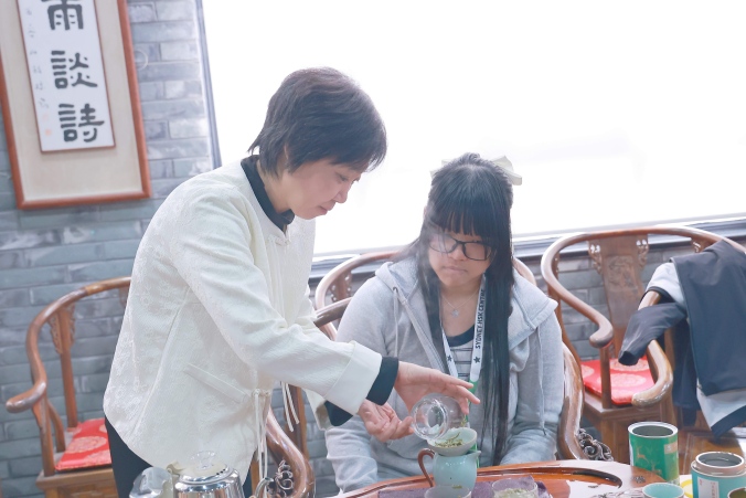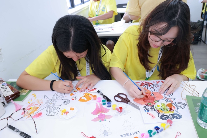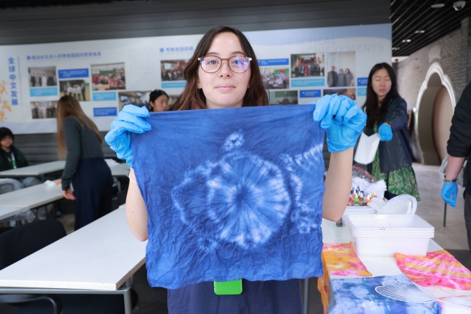 在文化体验课上,学员们循着春日足迹,深度感受中国传统文化的底蕴和内涵。书法课上,学员们握笔挥毫,体悟笔墨意境;纸鸢课上,学员们挥彩绘鸢,一笔一画勾勒春日柔情;扎染课上,学员们捆扎浸染,在布帛上晕开蓝白画卷;八段锦练习室中,学员们操习吐纳导引,感受中华养生魅力;茶艺课上,学员们习礼品茗,体味中国茶文化的内敛与雅致。