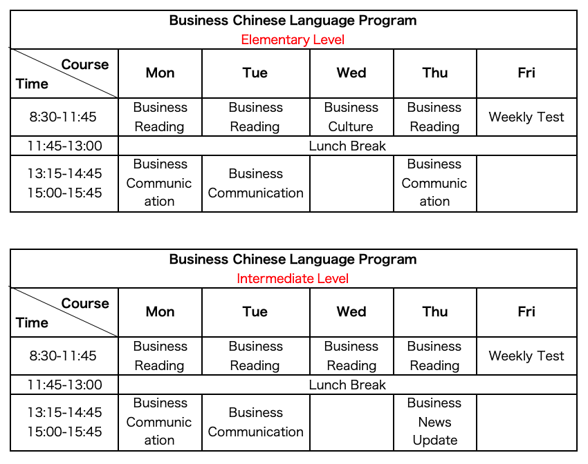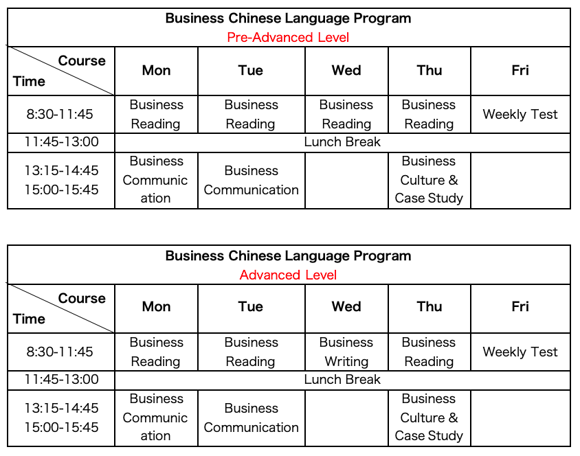 *If the conditions for opening classes are not met, students can choose to transfer to Standard Chinese Language program or Intensive Chinese Language Program.
